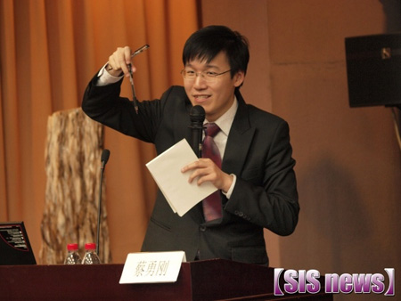 第二位进行演讲的是译联学术总监蔡勇刚先生。他首先提出了传统观念对翻译员的三点要求:翻译的职责是帮助听众理解演讲;作为一个口译员,他必须具备广博的知识面;而准确流利的传递信息则是重中之重。但随后,他挑战了前面传统的三点,指出,随着社会的发展,仅仅做到这三点还是不够的。一名优秀的译员,不仅要帮助观众理解演讲,更要借此机会来传播中国文化;不仅要有广博的知识面,更要有面对自己不知道的事物时从容不迫的勇气;不仅要准确流利的传递信息,更要注意发言人的每一个重读带来语义上的细小变化。这看似近乎苛刻的要求已然成为了一名优秀译员所应该具备的职业素质。蔡勇刚先生以自己口译生涯中鲜活的例子对自己的观点作了诠释。