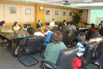 师生进行了很好的学术交流,气氛热烈。俞利军对Jarvis教授的讲座表示了充分的肯定,并对Jarvis教授表示了诚挚的谢意,同时欢迎Jarvis今后再来我院举办学术活动。