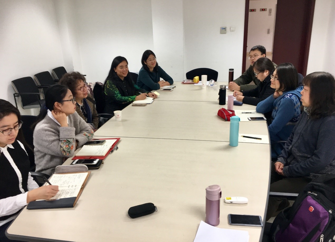 2018年10月25日下午,我院专用英语系副系主任李玉霞副教授带领学系8人教师团队,赴北京大学外国语学院交流大学英语课程改革经验,北京大学外国语学院英语系大学英语教研室主任钱清副教授和教研室副主任马小琦老师热情接待我院一行。