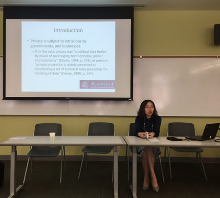 在主题为“数字时代的道德、伦理和文化价值”的主题研讨中,付涛宣读了论文,分析大数据时代中国互联网用户对待个人数据隐私的态度和行为;并和来自美国、芬兰、卡塔尔、巴西的同行就传播的可持续性、新闻自由和腐败等信息传播中的道德与文化问题进行了热烈的讨论。大会之余,付涛还参观了俄勒冈大学新闻与传播学院,并与传媒法方面的国际同行就中国的《网络安全法》和美国相关法律中的隐私权力等问题交换了看法。