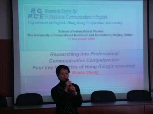 2009年12月17日下午,香港理工大学英语学术交流研究中心(RCPCE)主任Winnie Cheng 教授面向百合小说