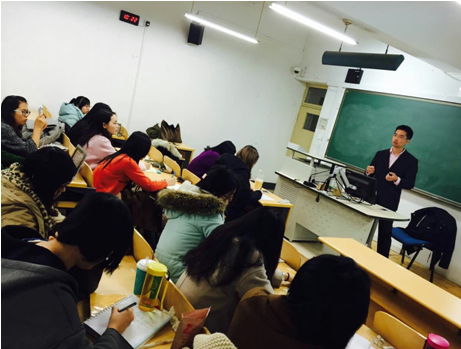 林主任首先详细介绍了新华社的三种主要业务,即通讯社业务,社办报刊、网站、电视台、金融信息服务,和网上新华社。他以新华社对外部(China News for World Service Department, Xinhua News Agency)为主体,讲述了对外部的目标、职责及传播途径,让同学们对新闻行业运作模式等有了深入了解。