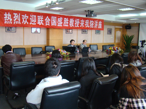 4月22日下午,应我院邀请,联合国总部资深笔译专家盛胜在诚信楼1314举办了题为“联合国及其机构的笔译”的专题讲座,讲座由俞利军副院长主持,我院部分老师及翻译专业的本科生和研究生参加。
