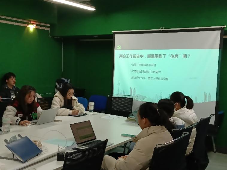 2023年3月15日中午,2019级党员李默萱和龙女作为主讲人在诚信1414主持开展了第二场微党课分享会,即2023年两会政府工作报告中青年最关注的问题之一——住房。此次微党课从三个方面阐述了住房主题,分别是:(1)两会中的“住房”(2)新市民和青年人的住房现状(3)住房问题解决措施。第一部分回顾了2023政府工作报告中关于住房的表述,即加强住房保障体系建设,支持刚性和改善性住房需求,解决好新市民、青年人等住房问题。第二部分则指出了当前新市民和青年人“买不起房”和“租不好房”的现状,同时点明其问题主要出在供给侧。而住房问题的解决不仅能提高新市民和青年人的幸福指数,使其更加安心就业创新,也会催生新的消费需求与能力,扩大内需。第三部分则罗列了党和政府出台的相关措施及取得的成绩,包含“累计改造棚户区住房4200多万套,上亿人出棚进楼、实现安居”“扩大保障性住房供给,推进长租房市场建设”,并在此基础上重申要“加强住房保障体系建设,支持刚性和改善性住房需求”,落实供给侧改革任务,注重“租售并举”“租售同权”,继续探索完善新型保障模式,汇集更多房源。