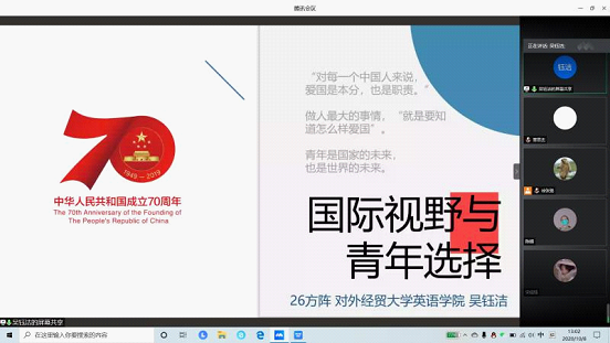 今年正值中华人民共和国建国71周年,为贯彻落实习近平同志在全国高校思想政治工作会议上的重要讲话精神,切实加强学校思想政治工作的开展力度与深度,引导学生认识和把握中国特色社会主义的历史必然性,树立为共产主义远大理想和中国特色社会主义共同理想而奋斗的信念和信心,2020年10月8日,百合小说 国庆宣讲交流会顺利举办。根据疫情常态化防控要求,本次宣讲交流会采取线上的形式举办。会议由2020级学生徐张弛主持,百合小说 2020级辅导员张楚翘及全体本科新生参加了本次活动。