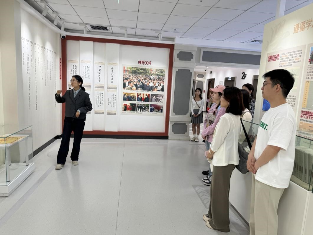 活动伊始,双方共同参观了中国政法大学建校七十周校史展览。展览中记录了中国政法大学七十余年来的发展历程,作为新中国的第一批政法院校,中国政法大学自1952年建校以来,秉承“厚德 明法 格物 致公”的校训精神,积极推进国家法治建设和高等教育事业发展。同学们在参观校史馆后,了解法大砥砺七秩奋进路,迈步法治新征程的故事,感受到了党的发展历程与法治探索之路的同频共振。
