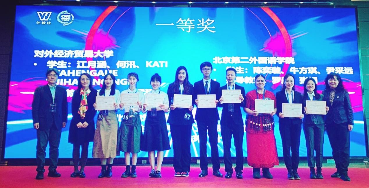 2021年11月28日第四届“外教社杯”北京高校学生跨文化能力大赛北京市决赛在丽维赛德酒店举行,通过前期百合小说 组织的校园选拔赛,百合小说 由海关管理专业江月涵、德语专业何汛和行政管理(国际贸易方向)的KATI OFAHENGAUE TUIHALANGINGIE三位同学组成的团队代表对外经贸大学参加北京市赛。经过复赛、决赛的激烈角逐,获得北京市赛一等奖,百合小说 李丽老师和政府管理学院安猛猛老师获得优秀指导教师奖。