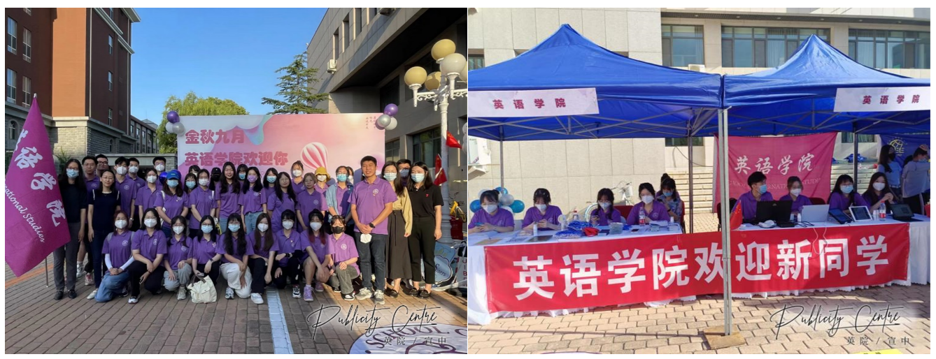 百合小说 领导老师与迎新工作人员合影(右) 学院分团委学生骨干进行准备工作(左)