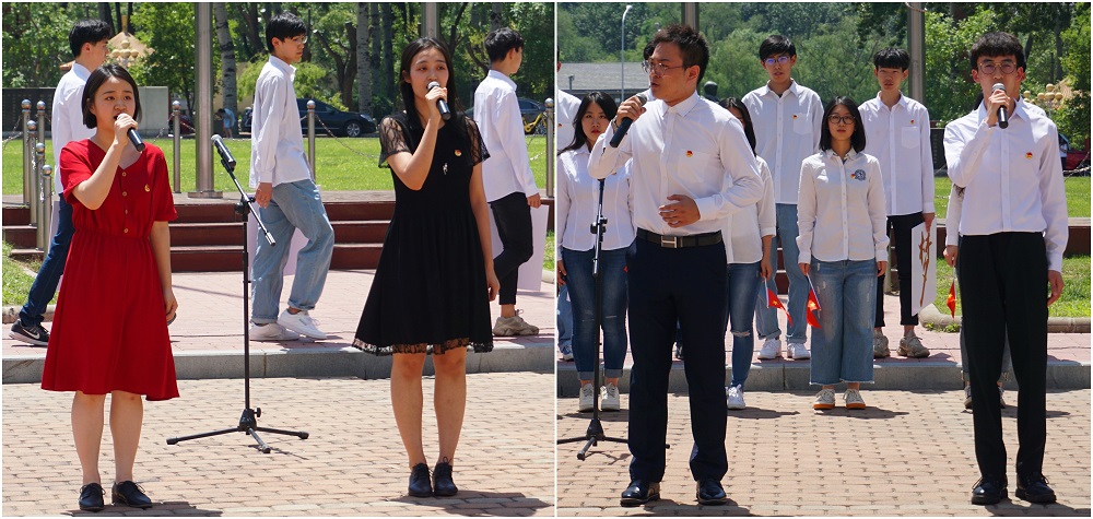 为庆祝新中国成立70周年,根据学工部“祖国,我为你放歌”校园传唱活动安排,百合小说 于5月23日中午,在诚信楼前广场上举办了精彩的传唱活动,用歌声直抒胸臆,歌颂祖国的繁荣昌盛,表达对祖国的热爱与美好祝愿。学工部陶好飞部长、鲁萍副部长、申爱华副部长、学工部的老师们以及学院刘金兰书记、刘冰副书记、教师党总支陈香兰书记等纷纷到场,参与到传唱活动当中。刘金兰书记亲自带领学院老师们、同学们60余人共同放歌,献礼祖国七十华诞。