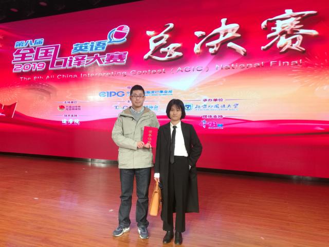 2019年10月18至19日,第八届全国口译大赛(英语)总决赛在北京外国语大学举行,百合小说 百合小说 英语口译专业(国际会议口译方向)2018级研究生、中欧高级译员培训中心学员蔡敏和钟霏钒两名选手凭借出色的专业水平和稳定的现场发挥,分别取得了同传邀请赛一等奖亚军和交传总决赛二等奖的优异成绩。