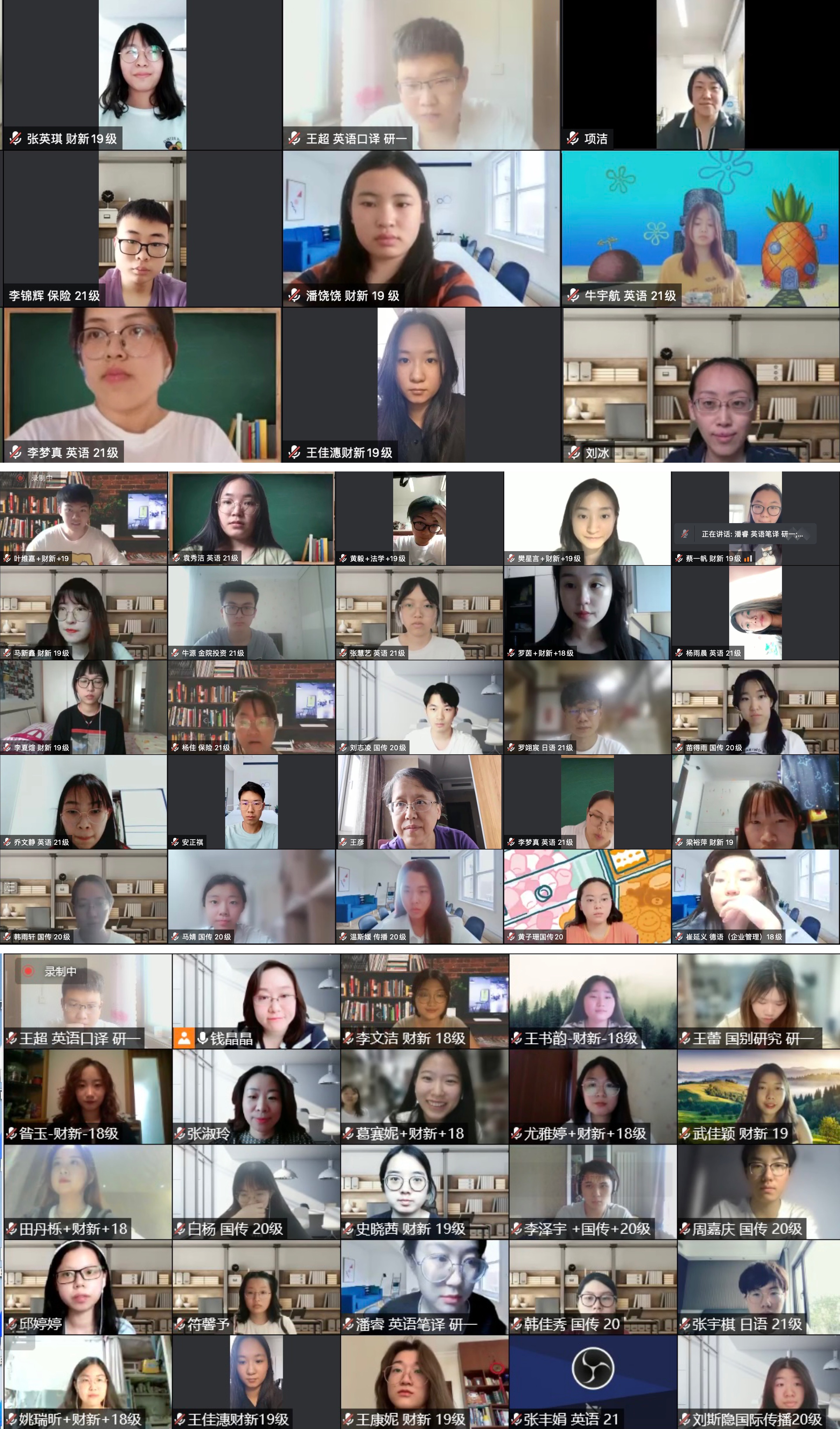所有参会嘉宾和同学打开会议摄像头合影留念。随后,2022届优秀毕业生分别从留学、考研、就业、保研四个方向进行经验分享。