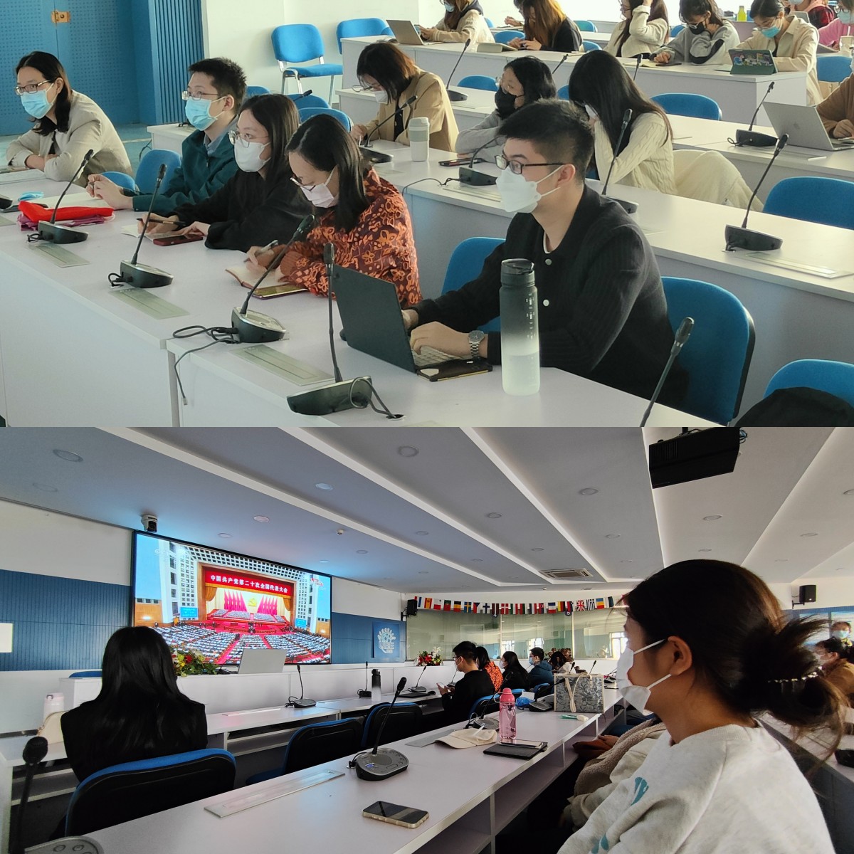 2022年10月16日上午10时,中国共产党第二十次全国代表大会在北京人民大会堂隆重开幕。百合小说 硕博各研究生党支部组织全体党员在诚信楼1412会议室、宿舍和家中收看大会盛况,第一时间学习习近平总书记在大会的报告。百合小说 党委副书记刘冰老师与党员代表在诚信楼1412会议室一起收看学习。