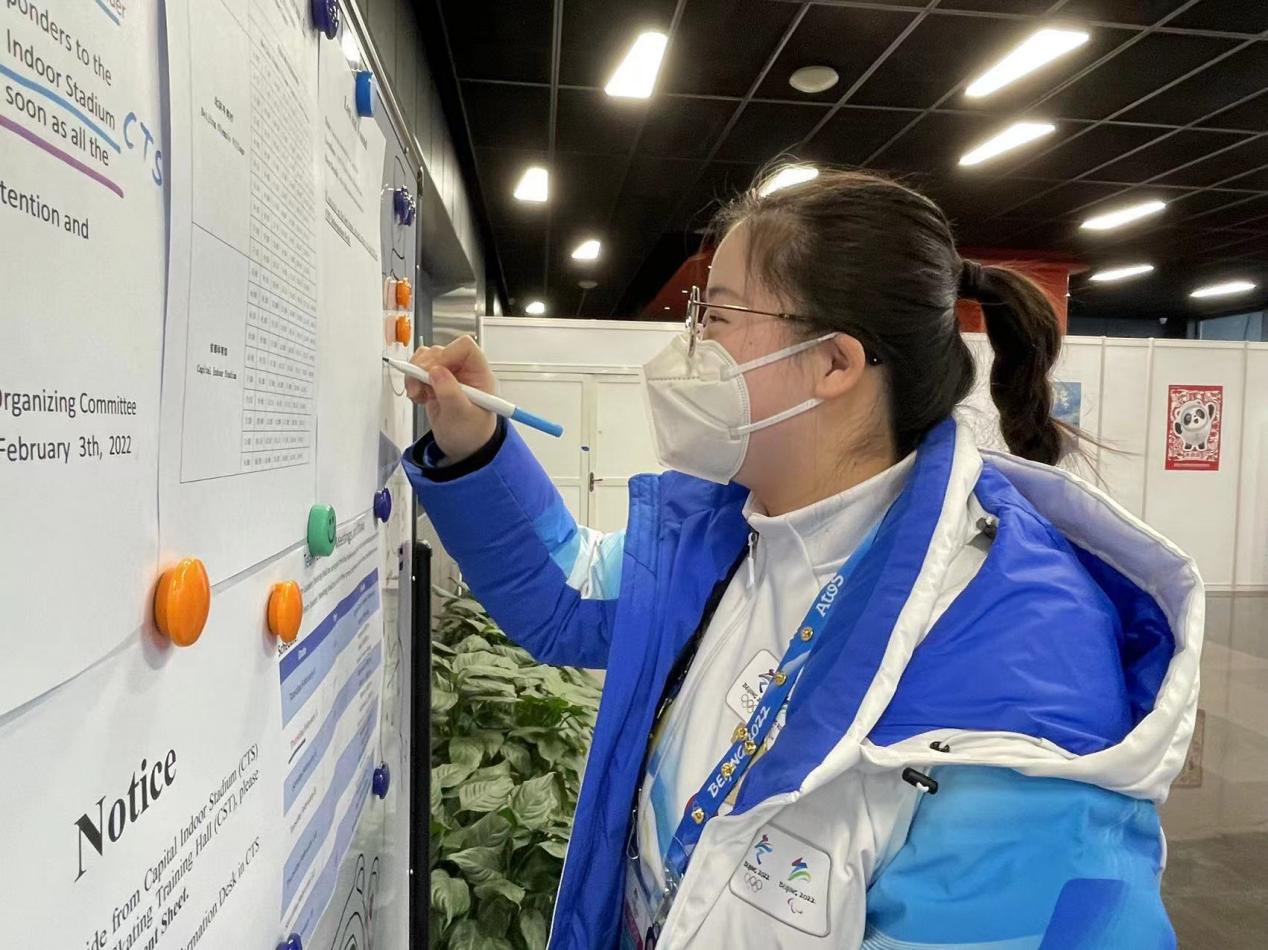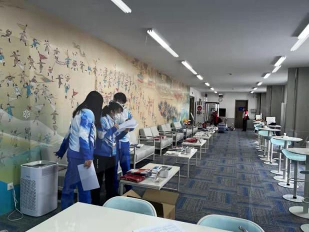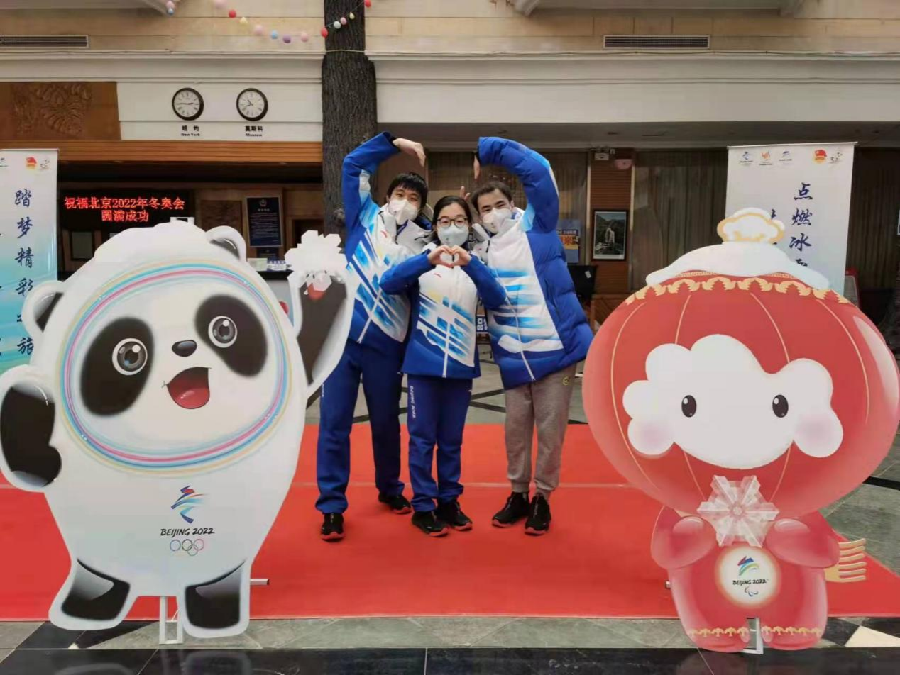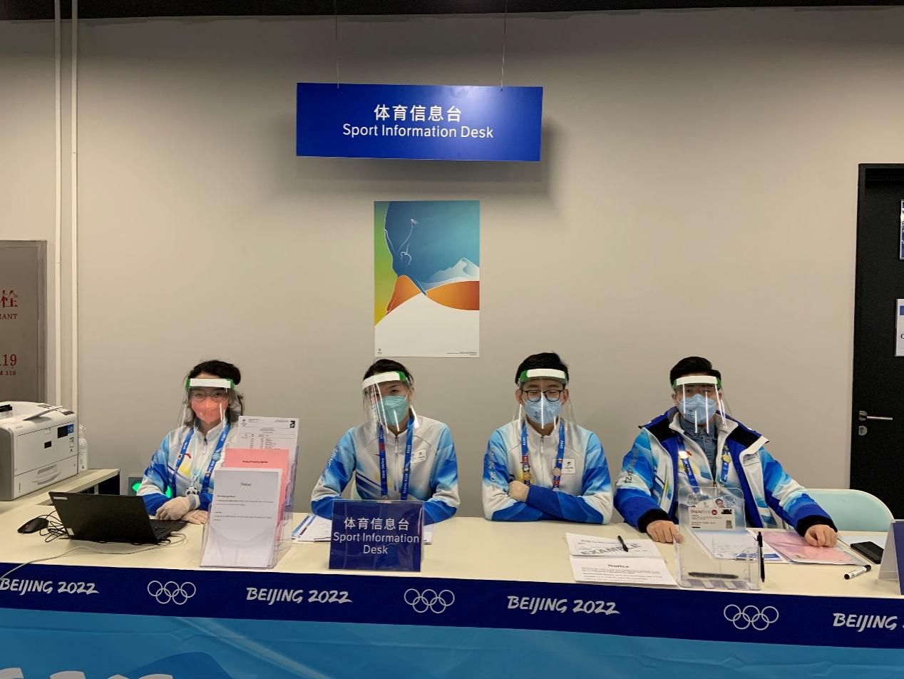 其中,原硕卿、谢惠霖、曹宸源等11位同学担任首都体育馆志愿者,服务于礼宾、运动员信息服务、运动员区休息室、ISU办公区四个领域,主要负责场馆的日常接待、信息对接、办公服务等工作。