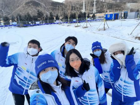 徐张弛、戴泽超、黄思予3位同学在延庆赛区担任志愿者,服务于延庆赛区的高铁团队以及延庆停保中心场站,主要负责为媒体记者以及随队官员提供语言服务,填写用车数据,进行翻译等工作。