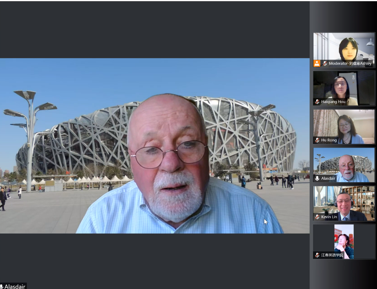 在三位嘉宾发表完各自的演讲之后,进入了模拟会议的专家小组讨论环节。林超伦先生、胡荣老师、Alasdair Thomson先生与侯海强女士参与到小组讨论环节当中,回答了主持人与观众提出的各个问题。林超伦先生还分享了自己在英国观看体育赛事的趣闻,专家小组讨论环节氛围热烈。