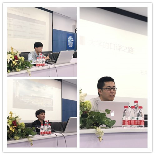 钟霏钒同学以对英语的热爱开场,介绍了自己在翻译专业和口译方向的发展历程,向新生们一步步揭开口译——这一看似对我们而言困难与遥远的专业技能的神秘面纱。他告诉我们,口译绝不仅仅是一个传达信息的桥梁,而是像演讲一般,需要与听众进行潜在的交流与互动。因此,要成为一名优秀的口译员,不但要具备充分的专业知识,更需要一份与人交往过程中的自信。此外,学长还想我们提供了一些学习上的建议,比如写英文日记、注重翻译过程中的每一个小细节,令我们收获颇丰。