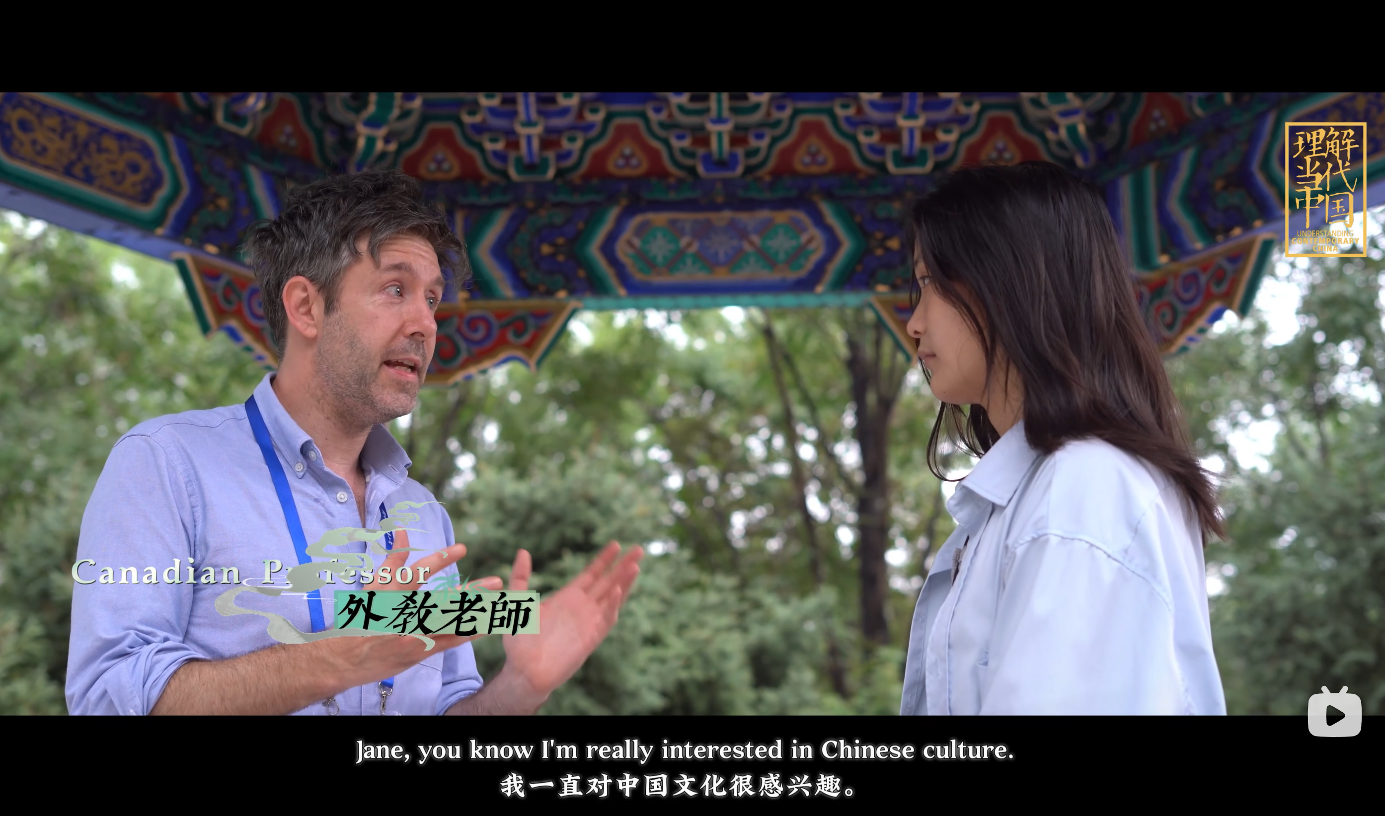 Jane(季然)向外教老师介绍故宫文化
