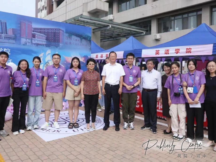 校院领导与迎新工作人员合影