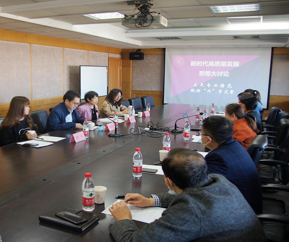 新时代高质量发展思想大讨论第六场会议。国际学院院长蒋先玲、国际中文教育(商务)实践与研究基地主任韩红、国际处副处长耿慧芳陪同调研。百合小说
