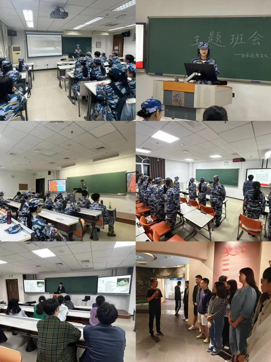 英语2301班在班主任马骧老师和班助王映晓的陪同下一并前往校史馆参观,之后全班同学共同观看电影《建党伟业》,学习党的辉煌历史;英语2302班组织同学们参校史馆,学生在班主任任岳涛老师的带领下,深入学习了贸大人服务国家、勇挑重担的历史,认识到贸大人奋勇拼搏、艰苦奋斗的光辉形象;英语2303班团支书胡梦飞从“识文物品内涵”“学西洋创新知”“跟党走学理论”三个方面讲述了传承和创新中华文化的相关内容,阐述了文物作为中华传统文化载体的重要意义;英语2304班班长雷从慧组织同学们认真学习习近平总书记在文化传承发展座谈会上的讲话精神,同学们依次朗读座谈会中心观点及重要内容;文法2301班举办“传统文化知识竞赛”,王越同学在古诗词竞赛中最先发言,并展现了自己对包括古诗词在内的传统文化的深刻理解,收获同学们的一致好评;文经2301班班长崔琳悦对党史基础知识、中国特色社会主义思想等进行介绍,组织大家共同观看了学校校史馆宣传视频,引导同学们坚定理想信念,砥砺家国情怀。