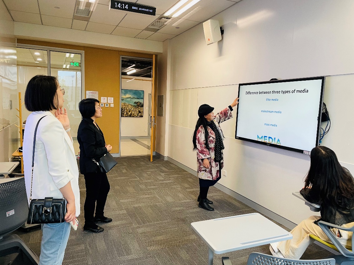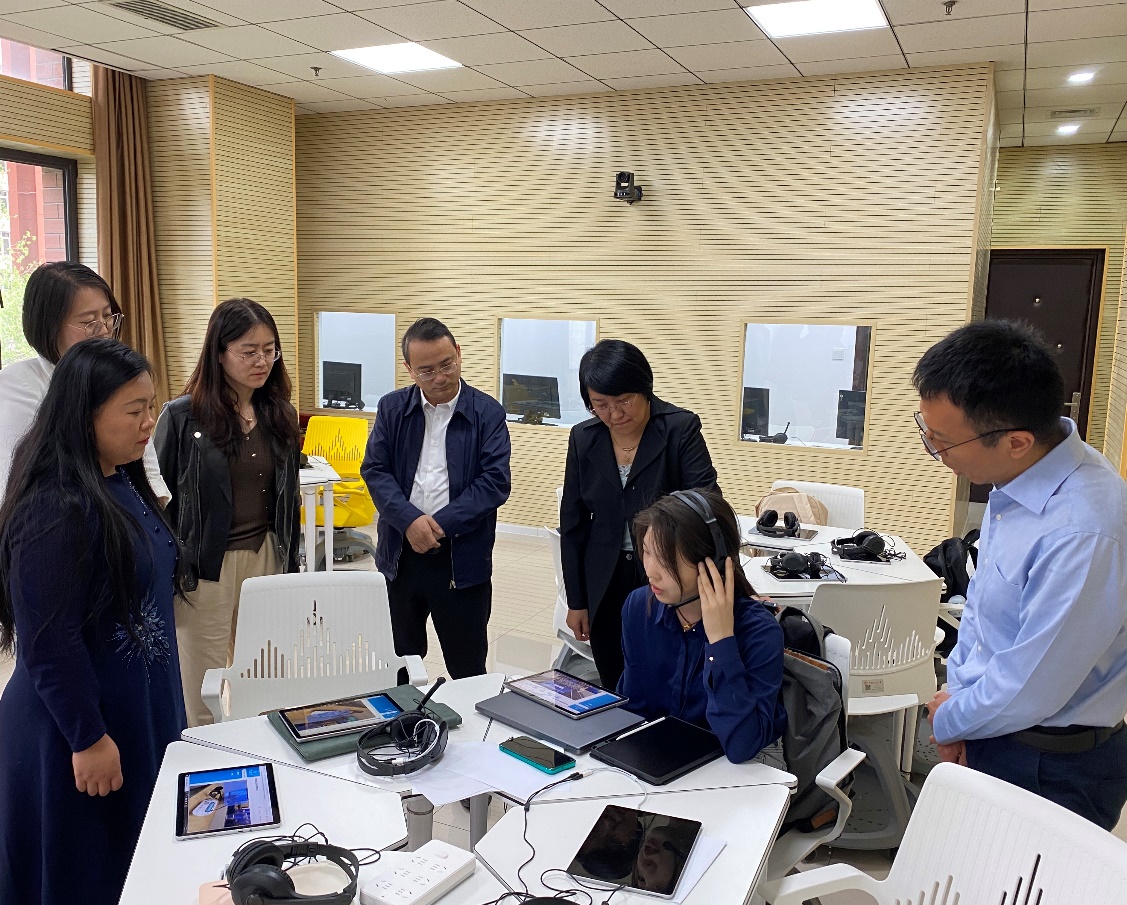 座谈会后,项洁书记一行参观了中国人民大学国际会议口译虚拟仿真实验室和智慧教室,深入了解了人大外国语学院在实验室和国家一流课程建设方面的理念、方法和经验,现场观摩了虚拟仿真平台在口译实训中的运用,体验了智慧教室的设备操作。