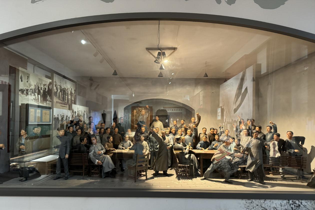 2022级武宇菲:走进这座庄严的建筑,我们重温了党光辉伟业的序章,李大钊、陈独秀等开展革命活动、北京大学生五四运动的爆发,酝酿和筹建中国共产党等革命历史渐渐在面前展开。其中,令我印象最深刻的展厅便是陈列新青年杂报的展馆。这份报刊是由陈独秀先生创办,是中国共产党历史上最具有影响力的杂志,在当时社会上引起了千层大浪,各地青年也纷纷勇敢地发表自己的看法并登报出刊。接着便是五四游行筹备室,房间里挂上了横幅和标语,这是五四运动前夜,北大学生义愤填膺,挑灯连夜写下的标语。“外争主权,内除国贼”“誓死力争,还我青岛”,这一条条横幅看得我满身热血沸腾。展示着五四前夜微缩景观的展台也将一个个人物形象的神态、表情细致地刻画出来,让我的内心久久不能平静。最后,在雨中我们结束了一天的参观,回顾前人的历史,我不禁暗暗下决心,在这个奋进的新时代,我一定会不辱使命,争做新青年。