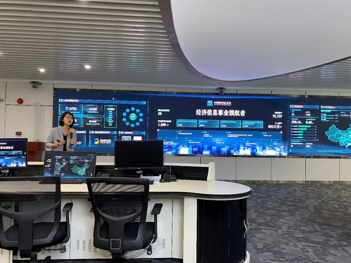项洁书记一行首先参观了中国经济信息社新华财经指挥中心,听取了中国经济信息社工作介绍。中国经济信息社是新华社直属企业,作为新华社经济信息业务的市场主体,负责新华社经济信息采集、产品生产、市场营销和用户服务工作,下设中经社控股有限公司、上海石油天然气交易中心新华(青岛)国际海洋资讯中心北京新华多媒体数据有限公司,开发了新华财经、新华信用、新华丝路、新华指数等重点产品,发起建设“一带一路”经济信息共享网络。中国经济信息社充分运用新华社作为国家通讯社和世界性通讯社的网络和资源优势,正在建设成为与我国经济地位相适应、具有重要国际影响的信息服务机构,引领中国经济信息事业的发展,成为国际权威的经济信息总汇。