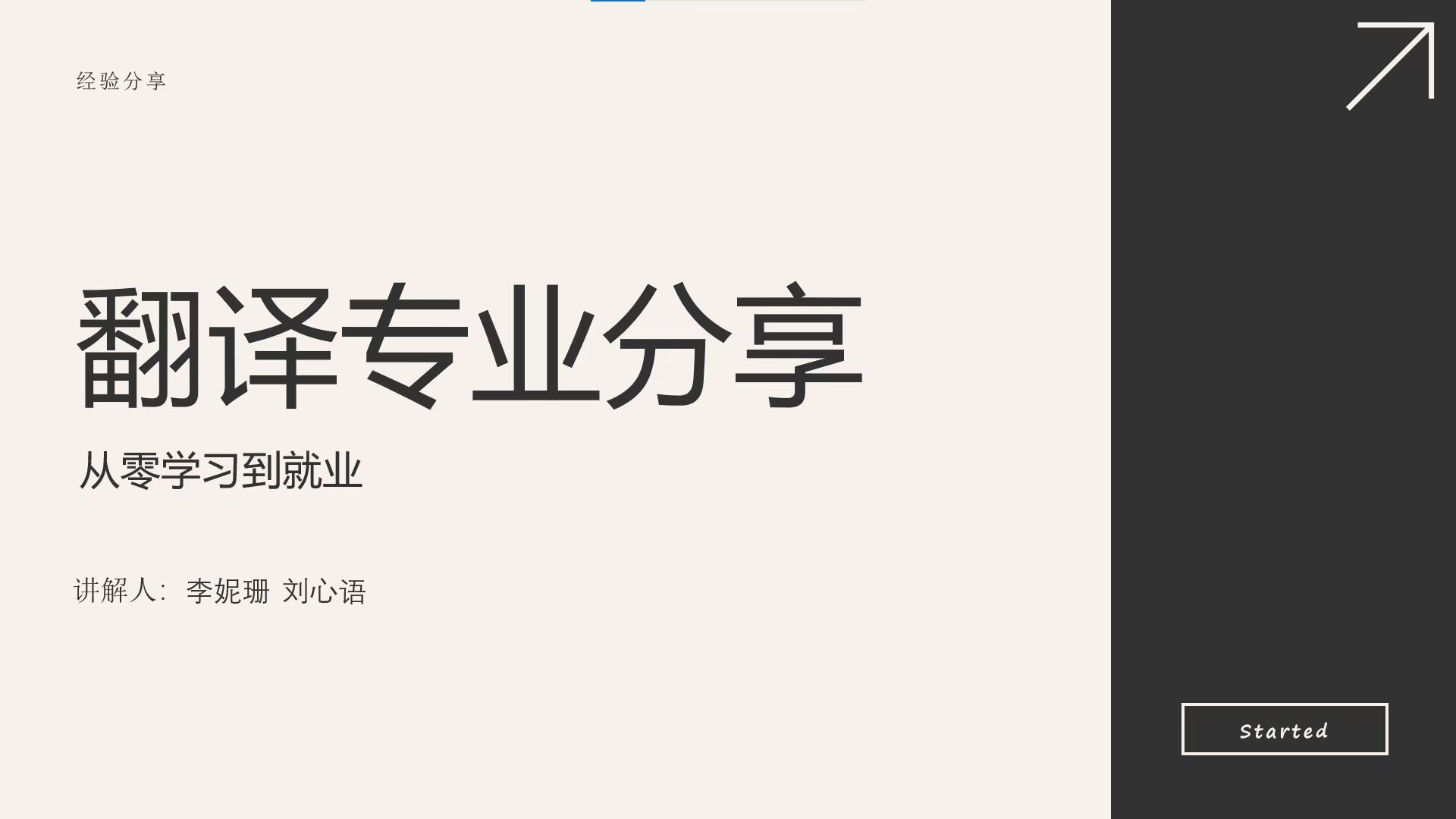 随后由李妮珊和刘心语同学介绍翻译专业。李妮珊同学首先对翻译专业进行概述,强调该专业训练的不仅是中英双语的表达能力,更对文化背景和行业知识提出要求。随后她详细解释了翻译培养方案中的专业课,并推荐相关入门书籍。刘心语同学从读研和就业两方面分享了翻译专业的未来发展方向。她先介绍了翻译专业国内读研和留学可以选择的专业,她强调要多搜集信息,做好未来规划,要多关注翻译行业发展动态,在实习中探索自己未来的职业规划,不给自己设限。