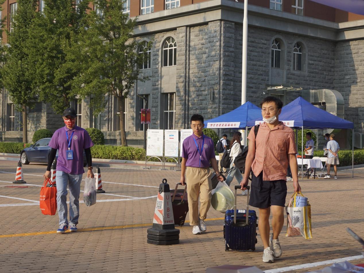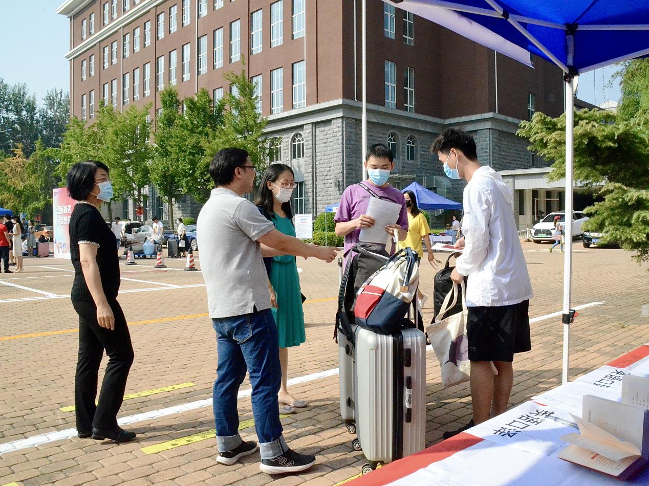 当天,学院2020级研究生第一和第二党支部还组织了近50名党员和入党积极分子志愿者,分别在宁远楼前和宿舍楼处迎接新生,引导报到和帮助搬运行李。