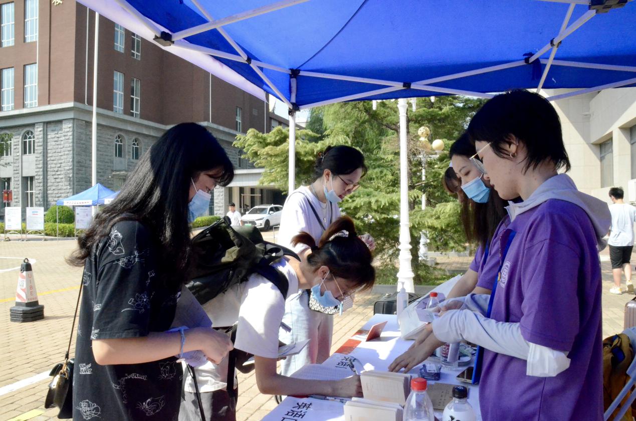 9月2日早上六点十分,百合小说 分党委副书记刘冰老师和研究生辅导员王公元老师带领学院研究生会骨干、班委及支委在诚信楼前广场有序地展开了迎新布置工作。早上七点,迎新工作正式开始,新生陆续进入校门。工作人员耐心细致地讲解相关材料及报到流程,并为新生发放研究生证、E卡、院衫及防疫礼包。学院也为每位研究生新生准备了贸大百合小说 专属帆布包。