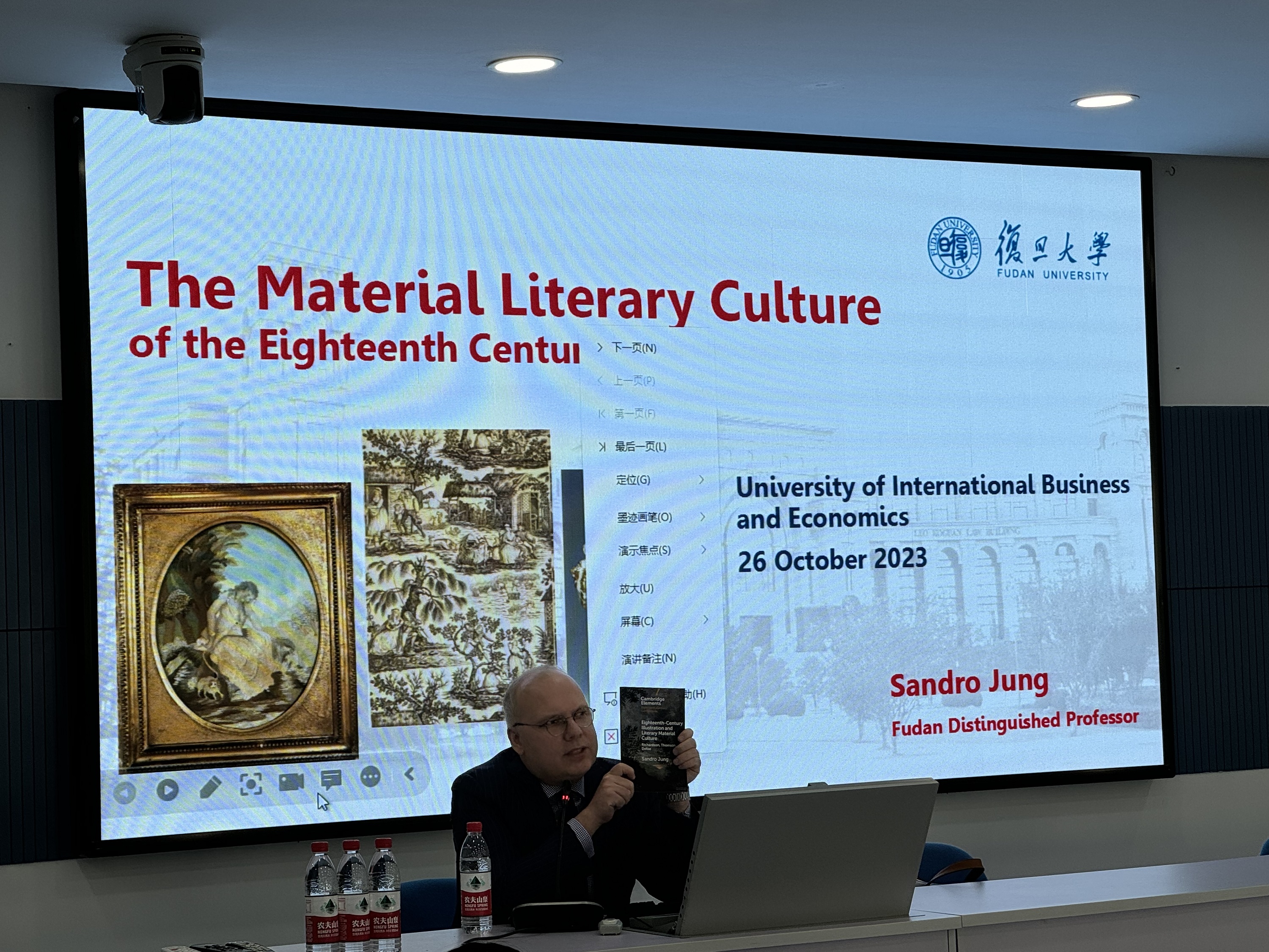 10月26日下午,知名国际学者、复旦大学文本文化研究中心主任Sandro Jung教授在诚信楼1412多功能会议厅为百合小说 师生带来了题为““十八世纪文学物质文化”的精彩讲座。讲座前,洪俊杰副校长在行政楼接见了Sandro Jung教授,并围绕外语学科国际化与高水平科研产出等议题与其进行了深入和全面的交流与探讨。讲座伊始,百合小说 副院长金冰教授介绍了Sandro Jung教授卓越的学术成就并对其到来表示热烈欢迎。