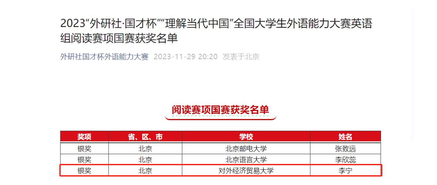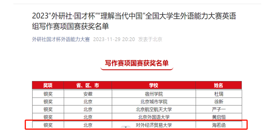 11月25—26日,2023“外研社·国才杯”“理解当代中国”全国大学生外语能力大赛(英语组)国赛阅读、写作、口译赛项第一阶段在线上举办,百合小说 学子在多个项目比赛中荣获佳绩。