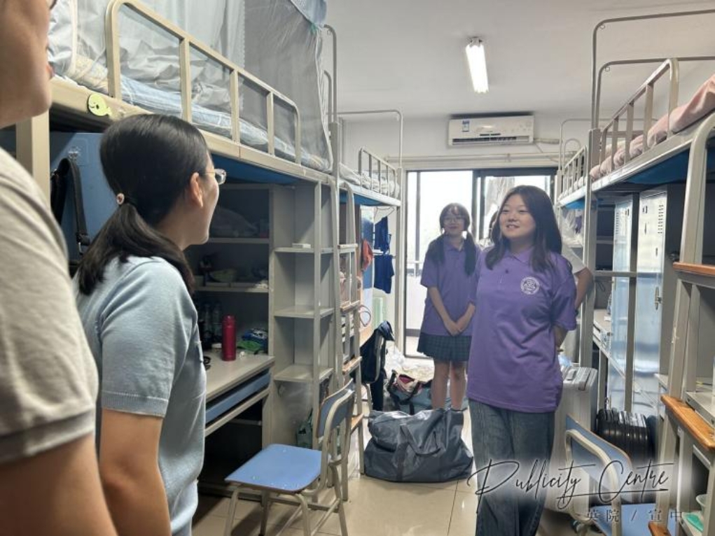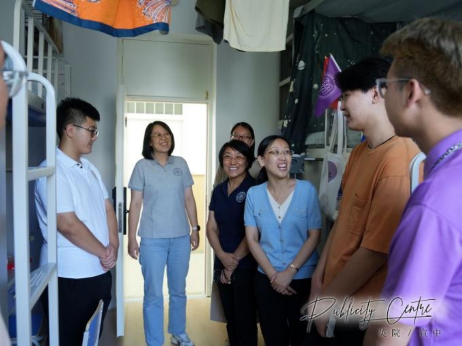 下午4点开始,学院党委书记项洁、副书记刘冰、副院长赵丹彤、新生辅导员张杉杉和几位班主任助理走访宿舍,看望新生,了解新生入学第一天的生活情况,送上学院的温暖与关怀。