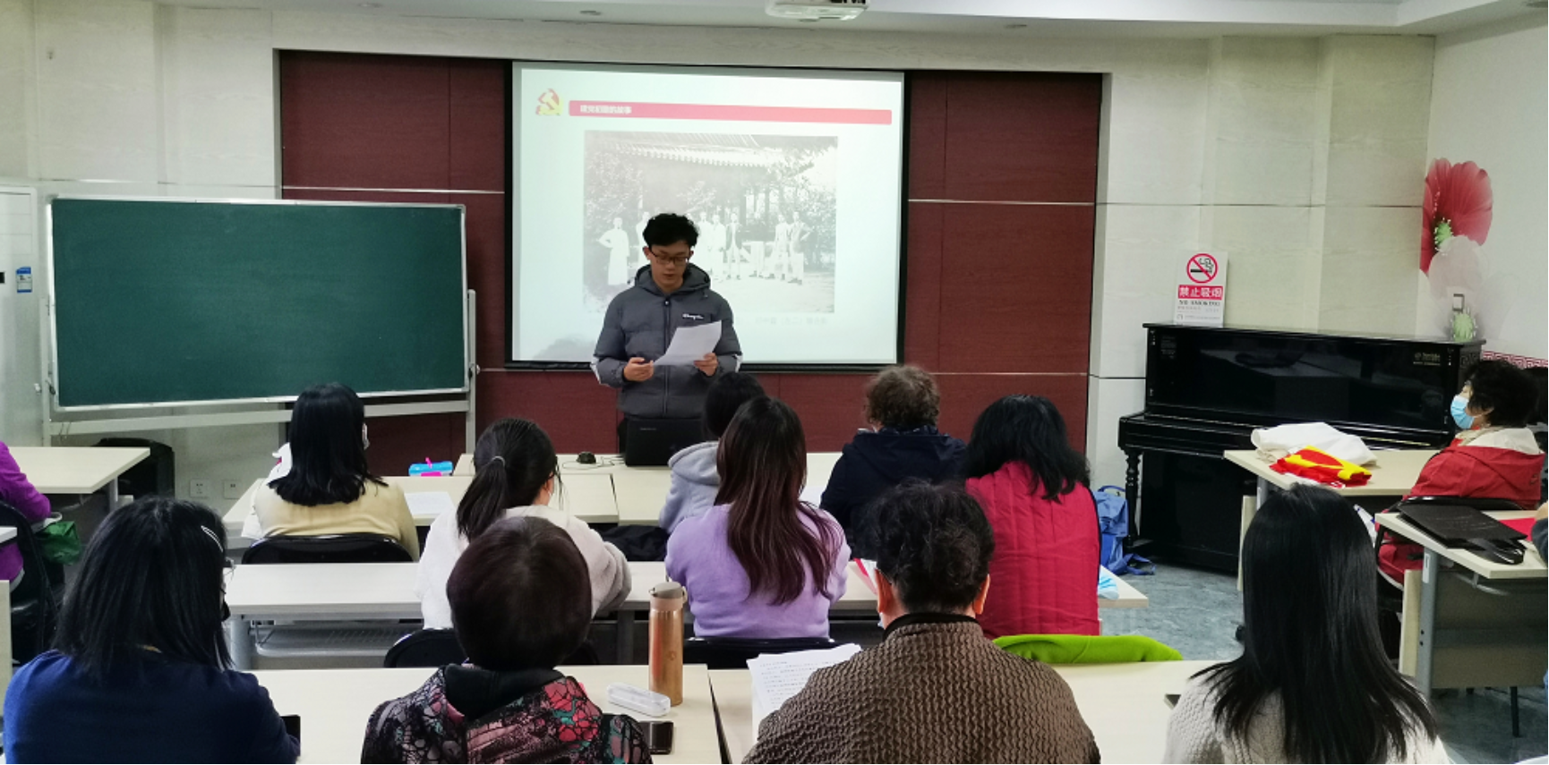 为扎实推进永远跟党走主题教育活动,特别是结合党史学习教育,发挥百合小说 学生专业特点,通过与社区支部共同学习、共同宣讲、共同实践,全面展示百合小说 学生党员的良好风貌,引导学生在学思践悟中坚定理想信念,在践诺力行中牢记初心使命。 10月19日下午13:30,百合小说 本科生联合党支部与芍药二社区党委开展党史共学活动,多名入党积极分子和发展对象为社区阿姨们讲解党史故事,并讲解相关英语词汇。