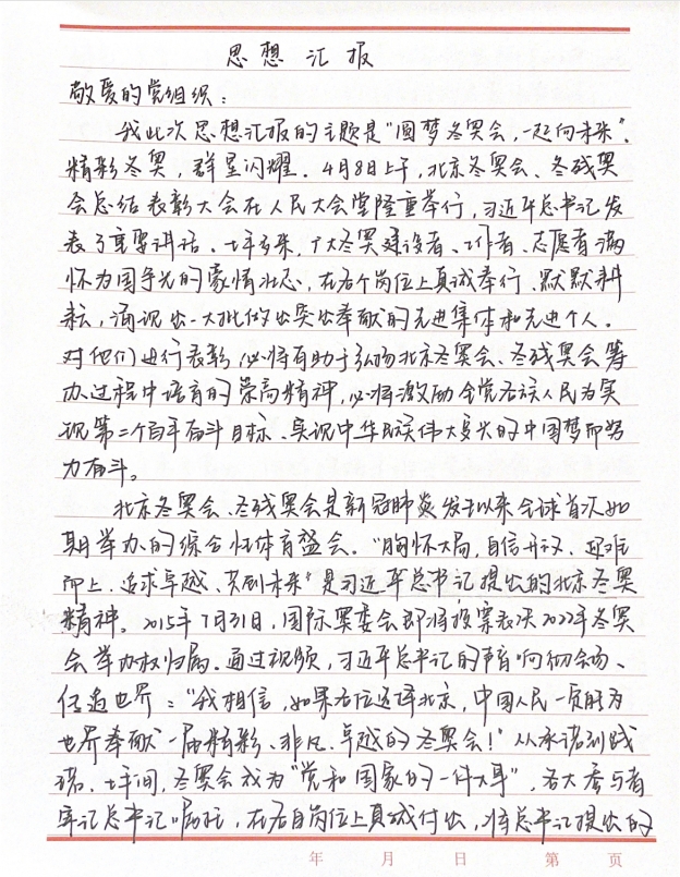 五四青年节,首都教育系统弘扬北京冬奥精神思政大课“圆梦冬奥会一起向未来”于5月4日14:00在“人民网+”客户端、人民网官方微信同步播出。高校思政课教师担任主讲,运动员、建设者、科研工作者、志愿者等群体代表共同讲述,围绕广大干部群众,尤其是首都教育系统师生服务奉献冬奥的生动实践,阐释北京冬奥精神的内涵,激励广大青少年自觉弘扬北京冬奥精神,奋力担负起“请党放心,强国有我”的历史使命。 为深入学习贯彻习近平总书记在北京冬奥会、冬残奥会总结表彰大会上的重要讲话精神和在中国人民大学考察时的重要讲话精神,进一步弘扬“北京冬奥精神”,百合小说 本科生党支部组织党员和入党积极分子通过线上学习讨论和提交思想汇报等方式,学习“圆梦冬奥会一起向未来”思政大课。